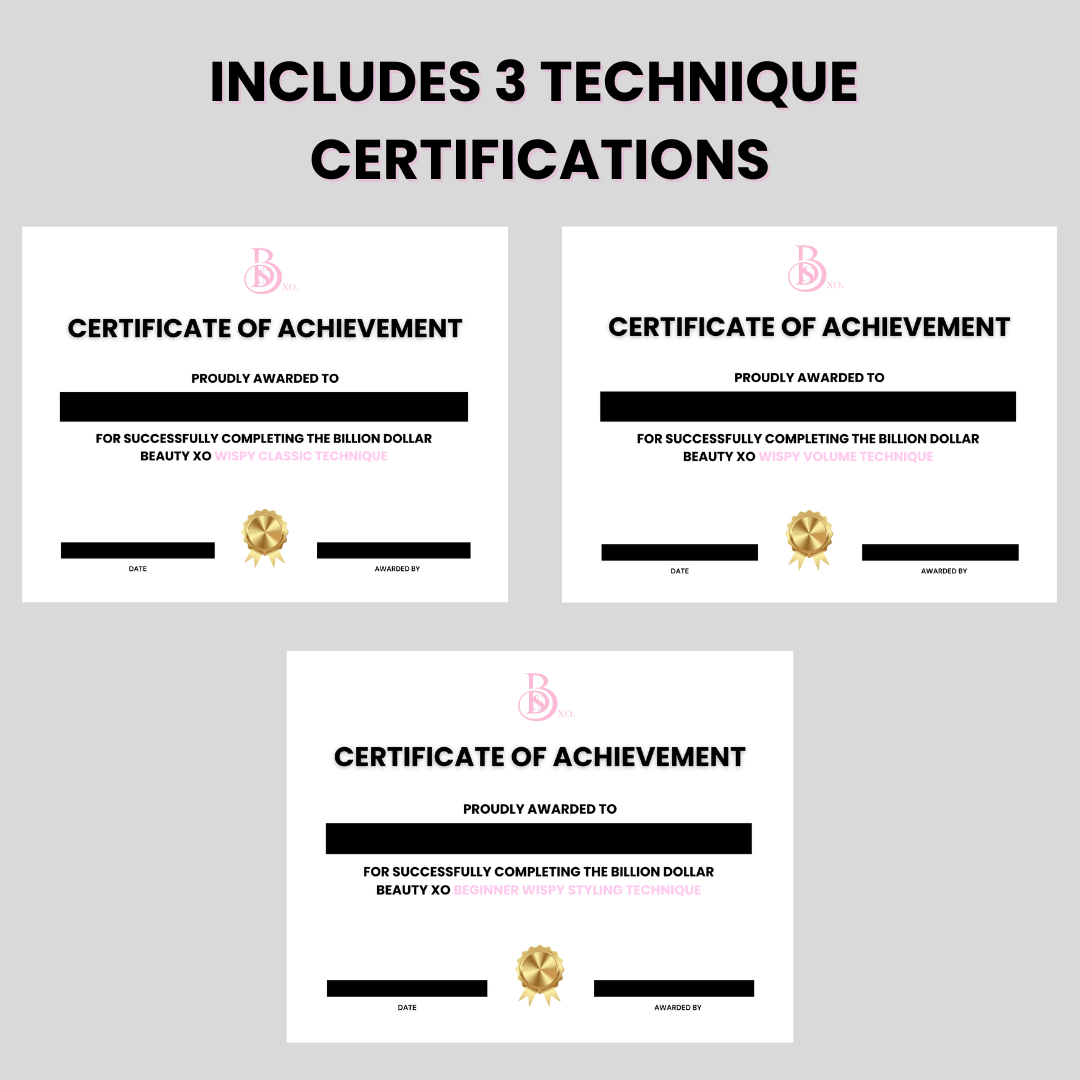 • 5 Lash Certifications upon completion (Classic, Hybrid, Volume, Mega, & Wispy)